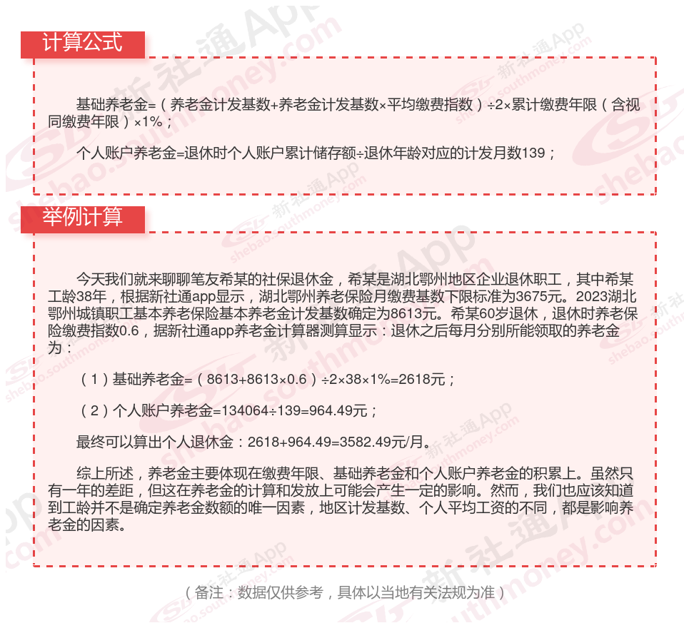 湖北鄂州退休工资养老金计算方法及公式2024年最新(举例说明)