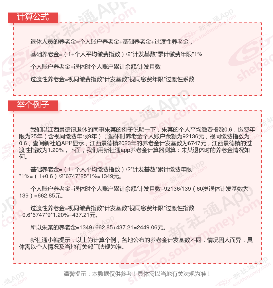 江西景德镇退休工资养老金计算方法及公式2024年最新(举例说明)