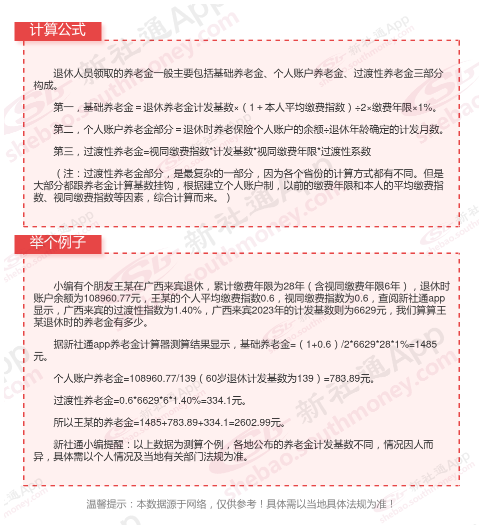 广西来宾退休工资养老金计算方法及公式2024年最新(举例说明)