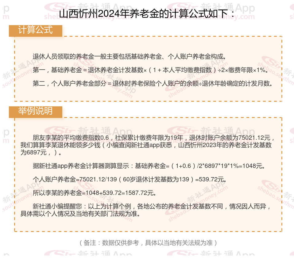 山西忻州退休工资养老金计算方法及公式2024年最新(举例说明)