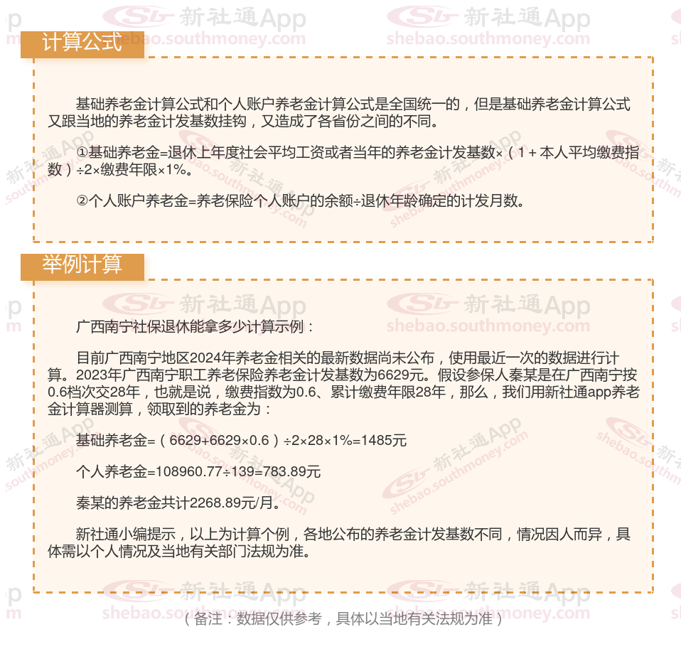 广西南宁退休工资养老金计算方法及公式2024年最新(举例说明)