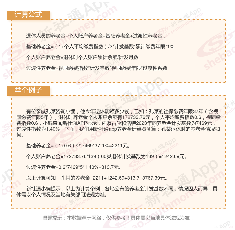 内蒙古呼和浩特退休工资养老金计算方法及公式2024年最新(举例说明)