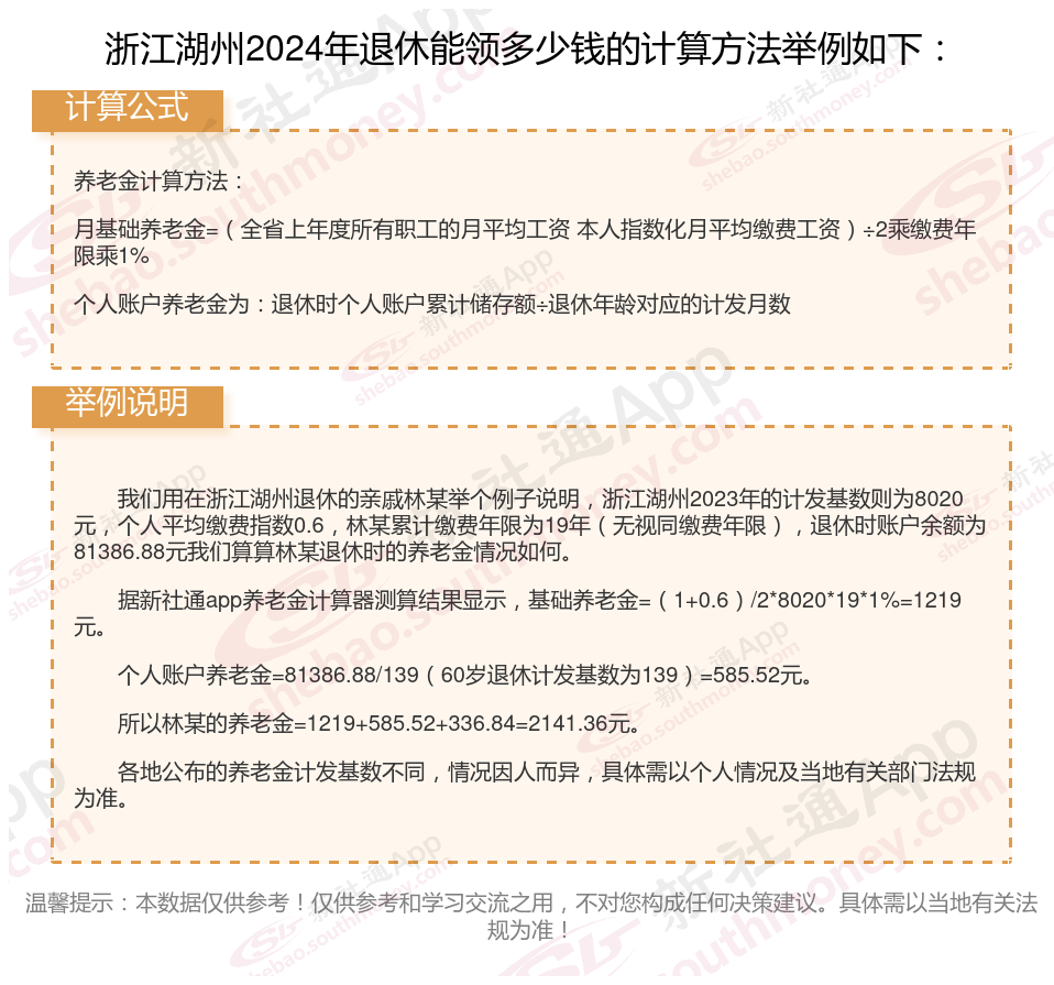 浙江湖州退休工资养老金计算方法及公式2024年最新(举例说明)