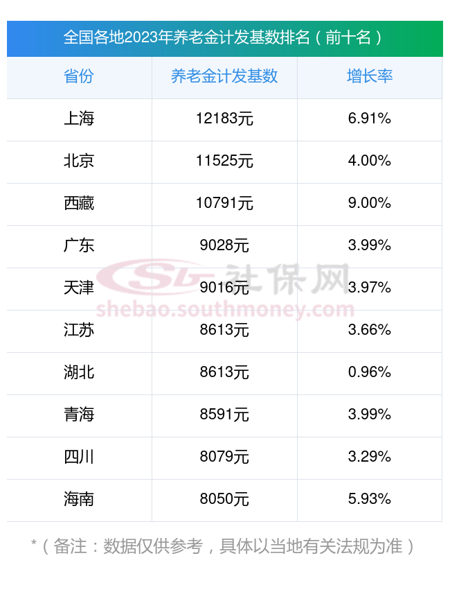 二、全国2023年养老金计发基数的前10省份的具体情况