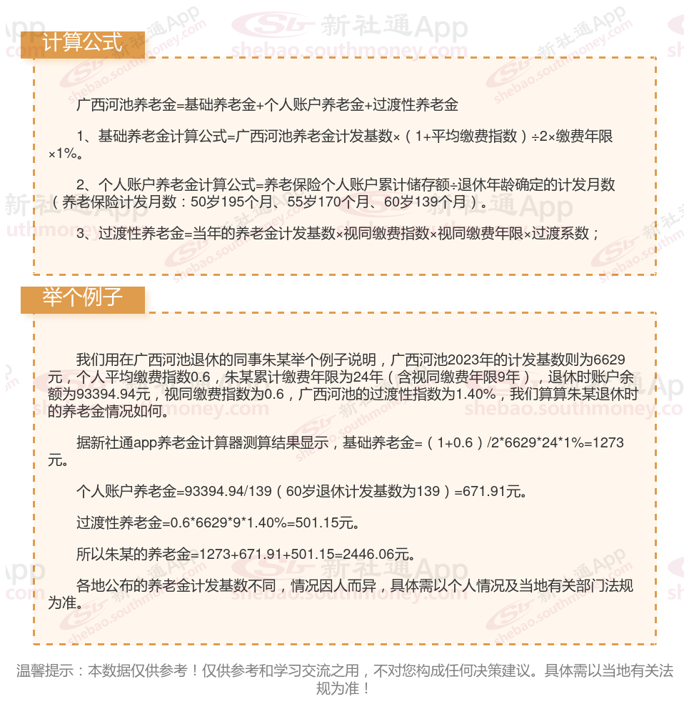 广西河池退休工资养老金计算方法及公式2024年最新(举例说明)