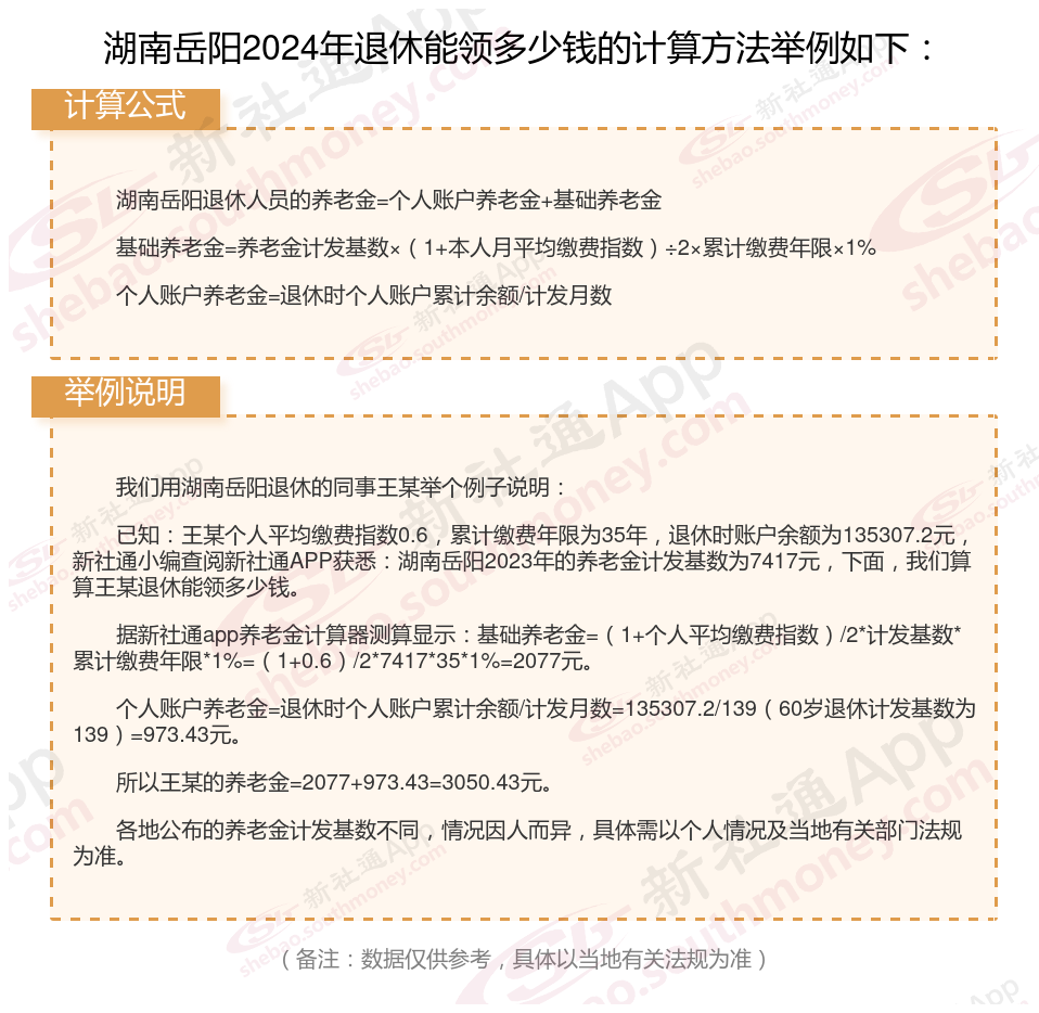 湖南岳阳退休工资养老金计算方法及公式2024年最新(举例说明)