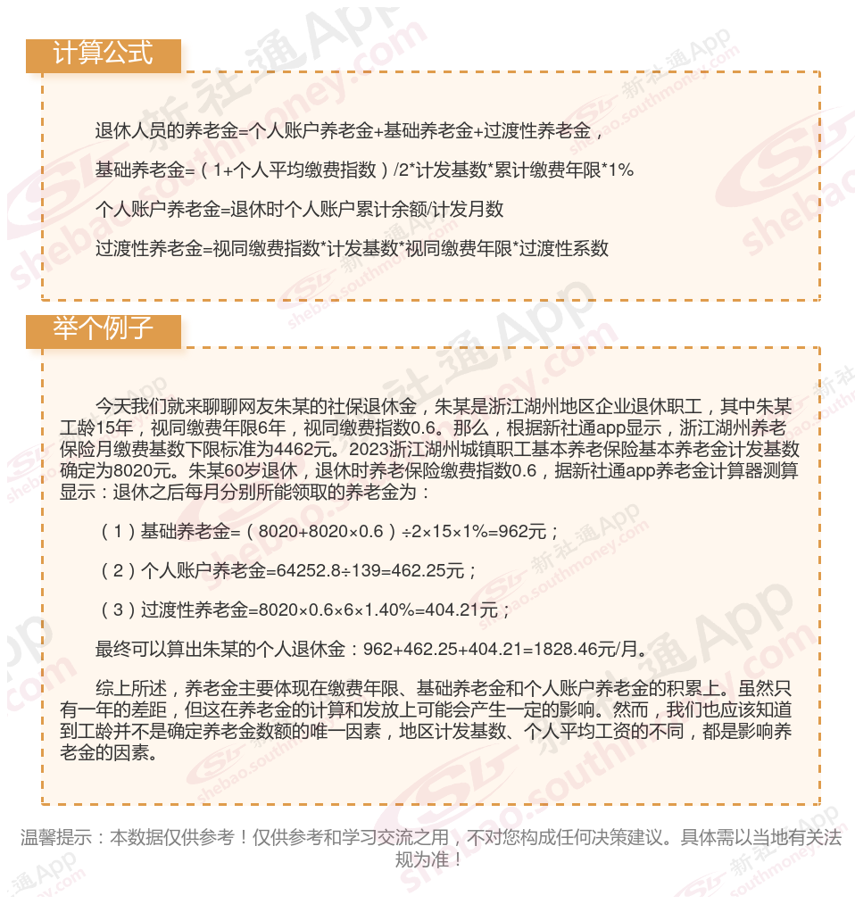 浙江湖州退休工资养老金计算方法及公式2024年最新(举例说明)