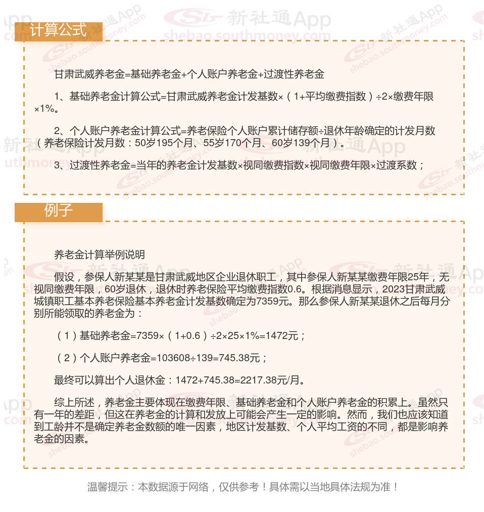 以上就是甘肃武威养老金计发基数的全部内容,希望对你有帮助,欢迎关注新社通app解锁更多社保专业资讯。