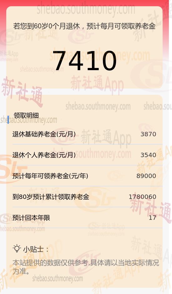 新社通app养老金计算器算出养老金多少钱一个月?