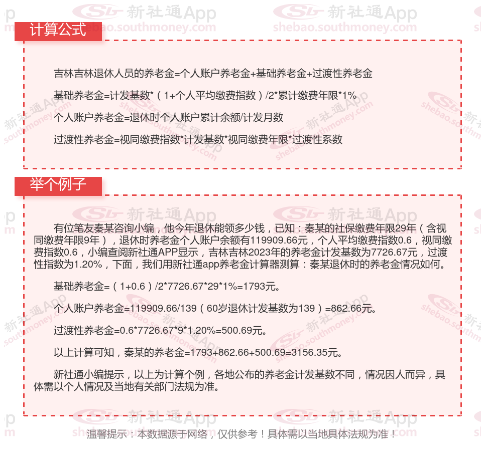 吉林吉林退休工资养老金计算方法及公式2024年最新(举例说明)