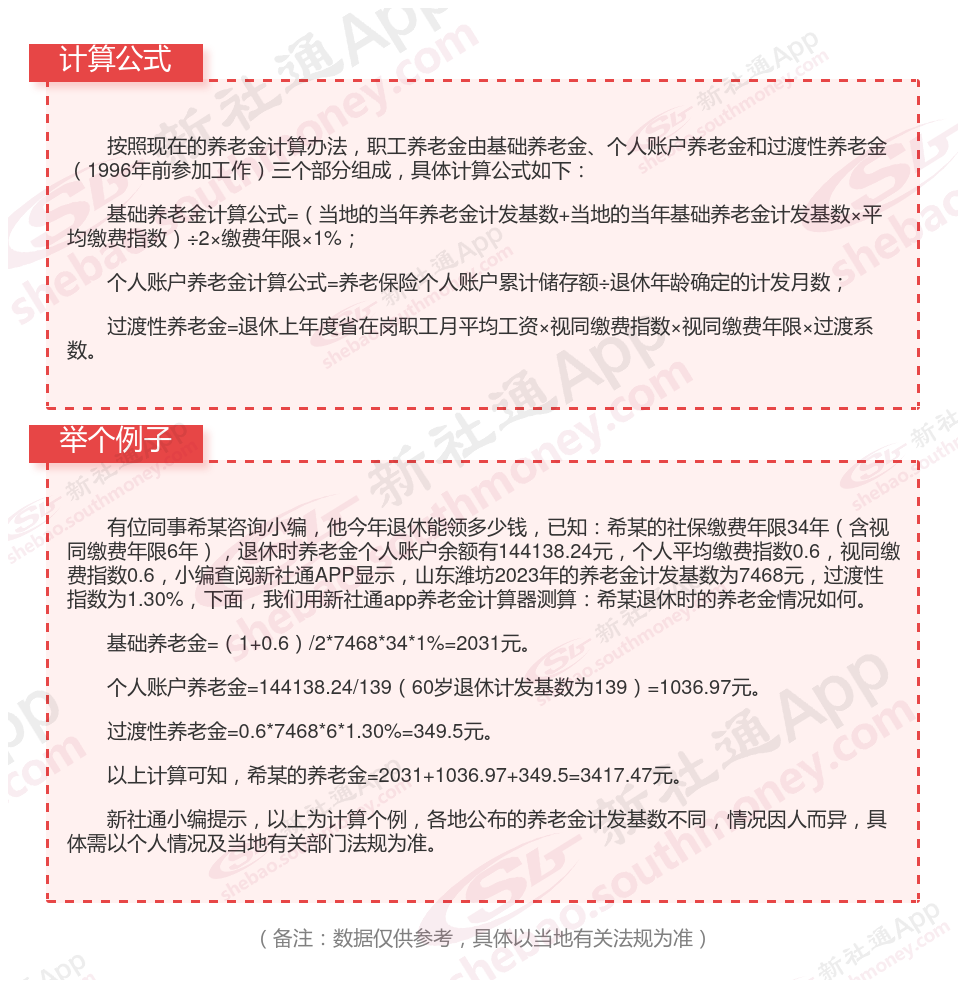 山东潍坊退休工资养老金计算方法及公式2024年最新(举例说明)