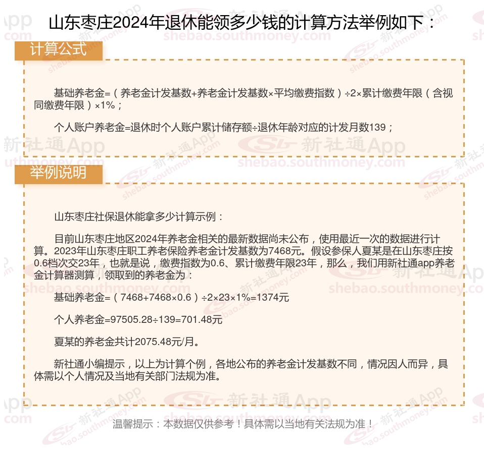 山东枣庄退休工资养老金计算方法及公式2024年最新(举例说明)