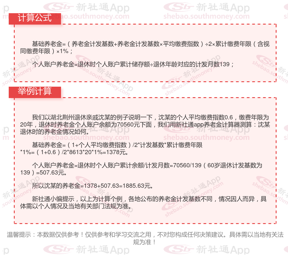 湖北荆州退休工资养老金计算方法及公式2024年最新(举例说明)