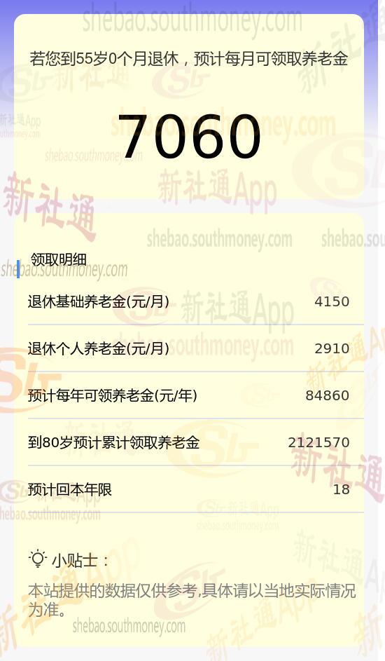养老金总和:两者相加,每月养老金总额达到7060元。