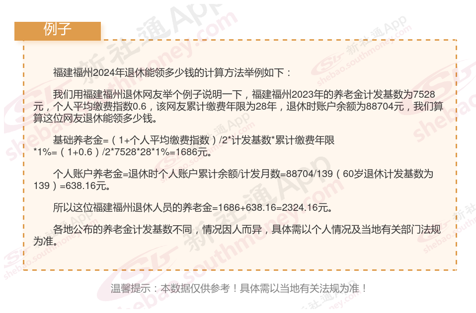 2024年福建福州养老金重算后补发多少的计算公式(举例说明)