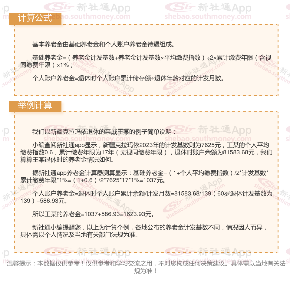 新疆克拉玛依退休工资养老金计算方法及公式2024年最新(举例说明)
