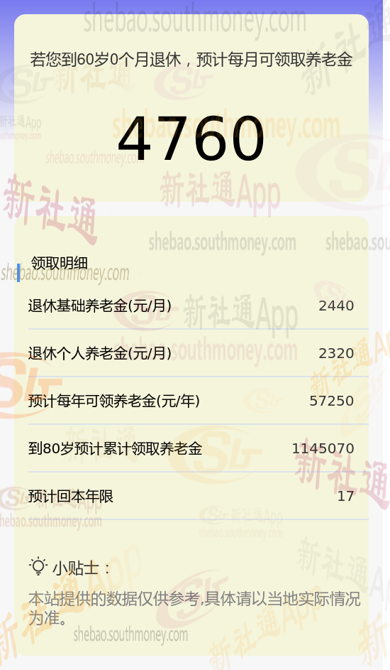 个人养老金计算结果:将上述数据代入公式,得出秦某的个人养老金为每月约2320元。