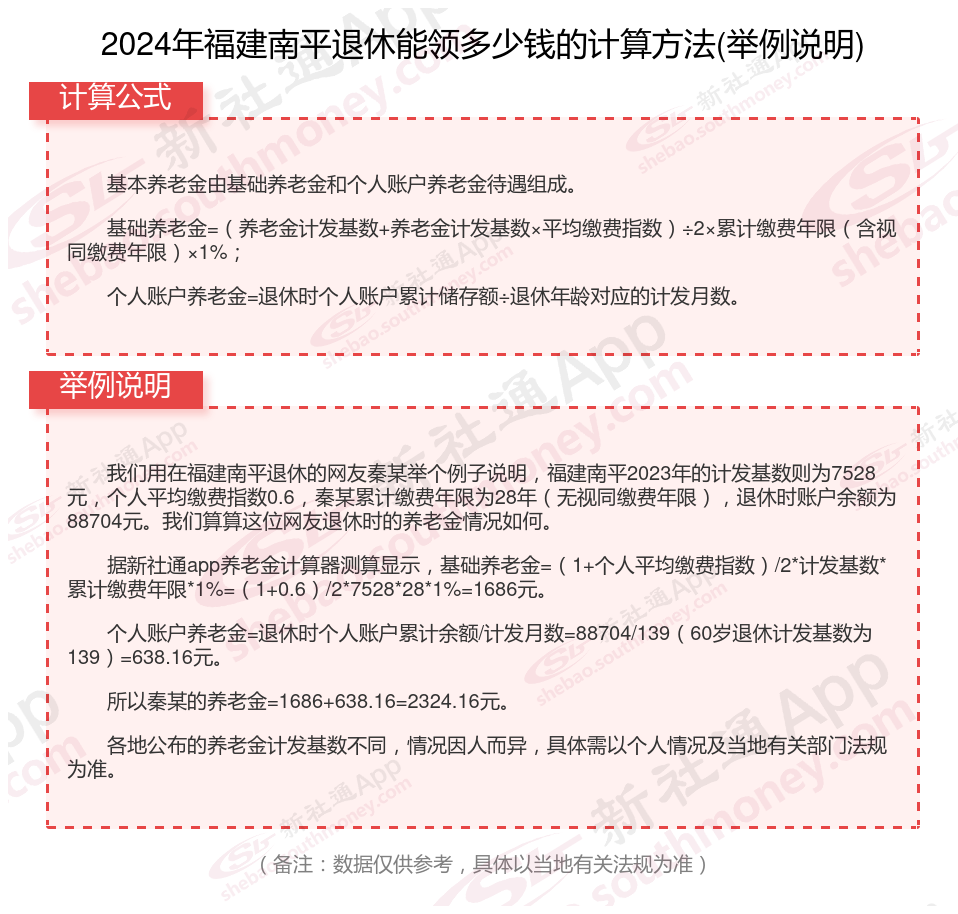 福建南平退休工资养老金计算方法及公式2024年最新(举例说明)