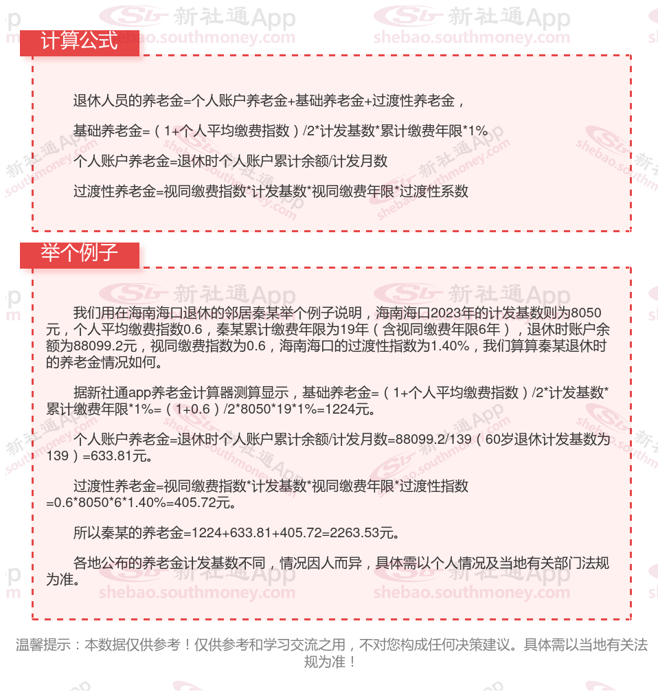 海南海口退休工资养老金计算方法及公式2024年最新(举例说明)