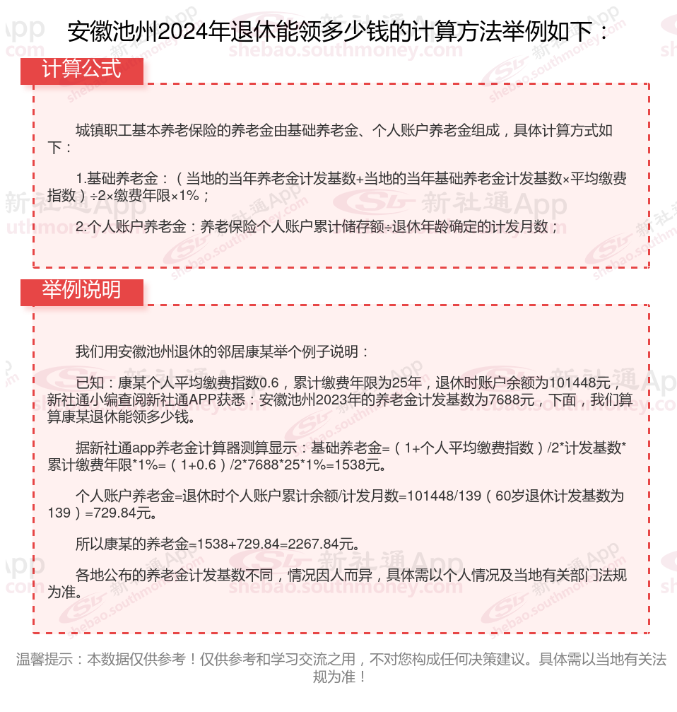 安徽池州退休工资养老金计算方法及公式2024年最新(举例说明)