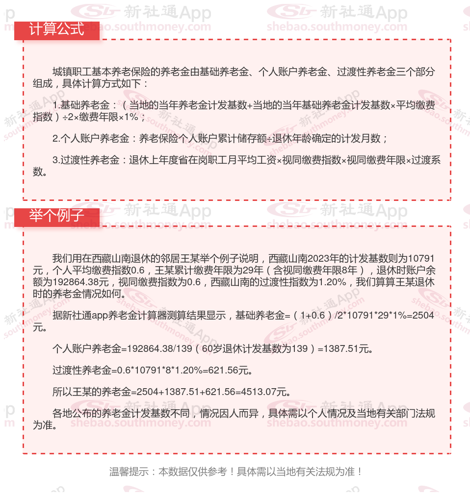 西藏山南退休工资养老金计算方法及公式2024年最新(举例说明)