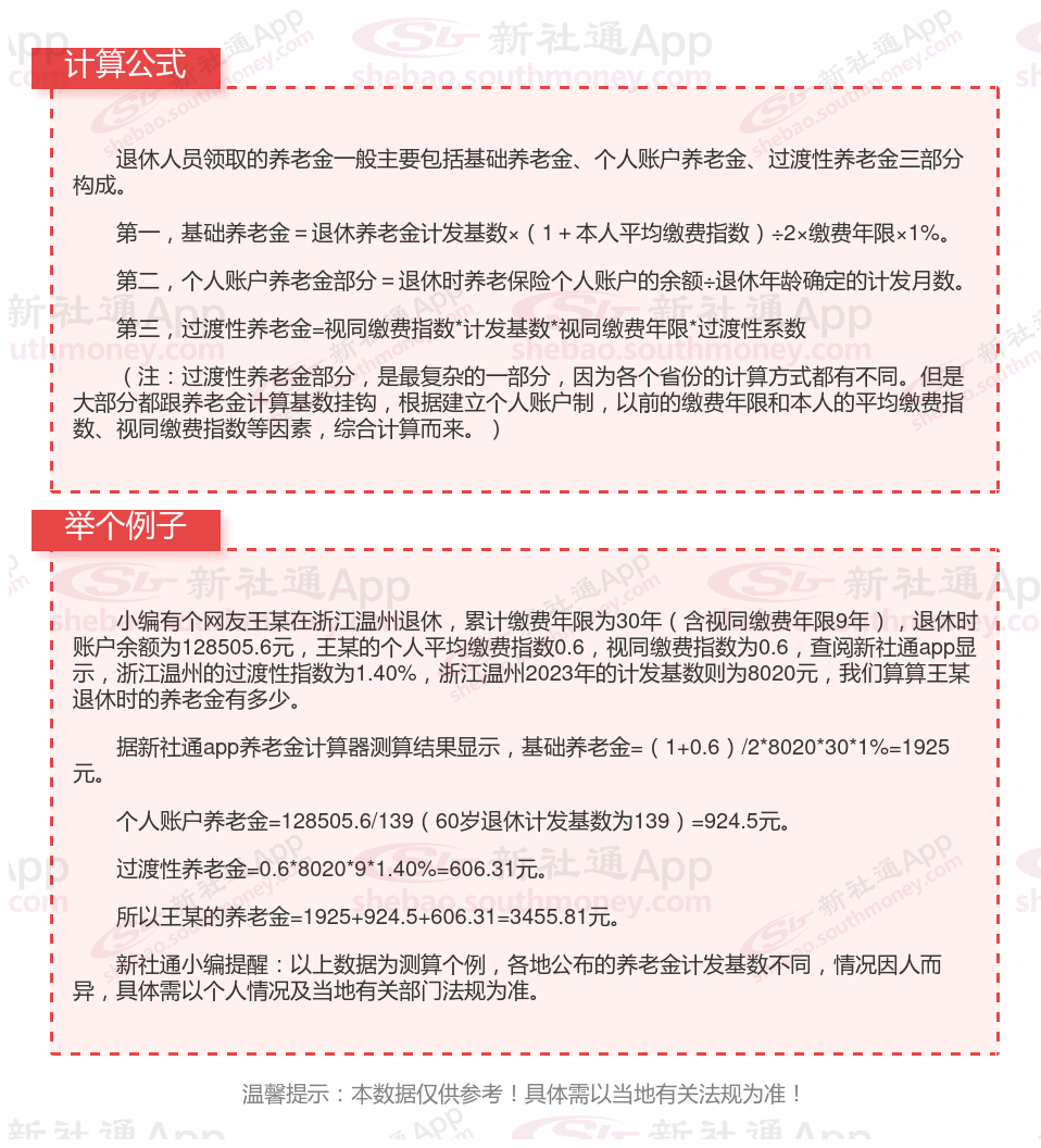 浙江温州退休工资养老金计算方法及公式2024年最新(举例说明)