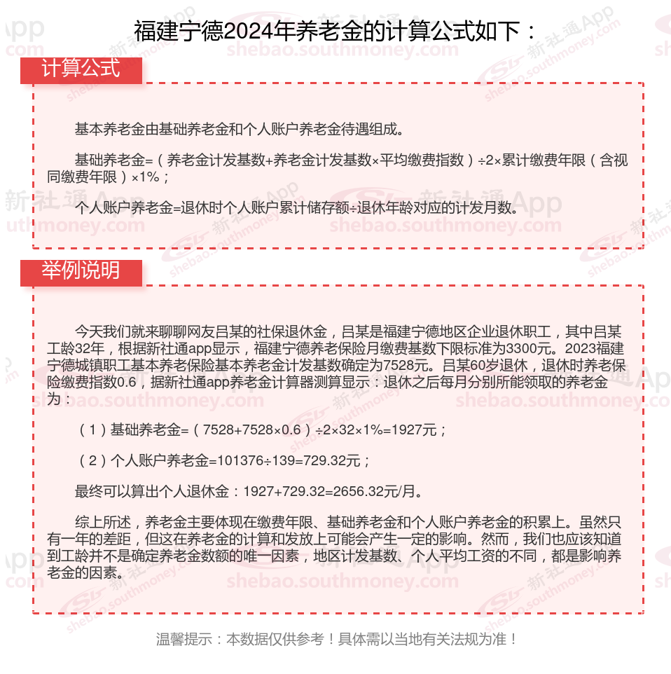 福建宁德退休工资养老金计算方法及公式2024年最新(举例说明)