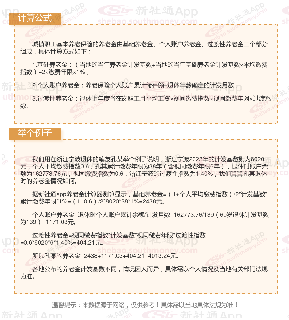 浙江宁波退休工资养老金计算方法及公式2024年最新(举例说明)