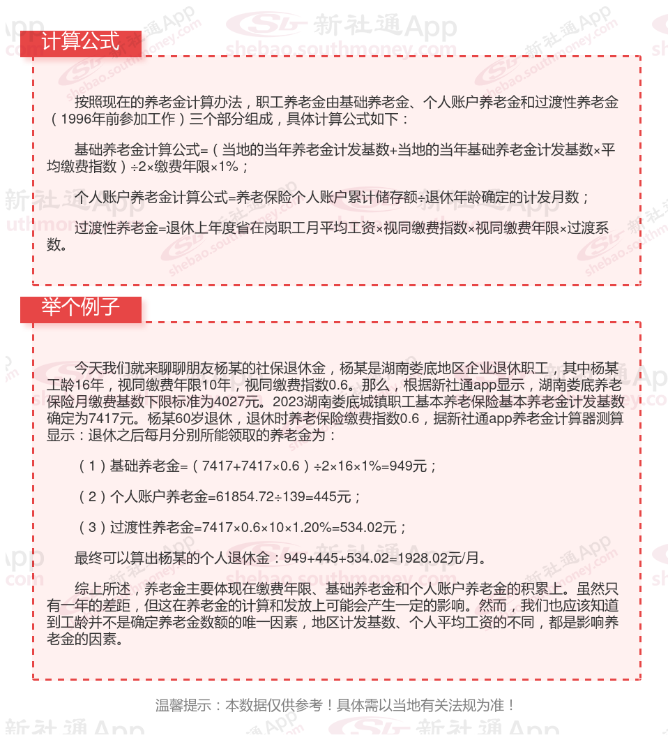 湖南娄底退休工资养老金计算方法及公式2024年最新(举例说明)