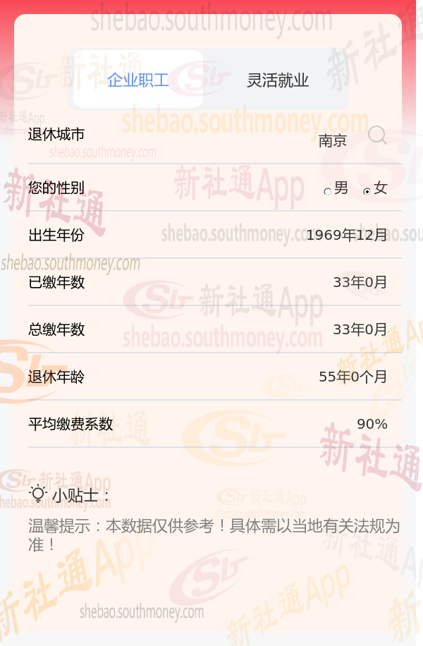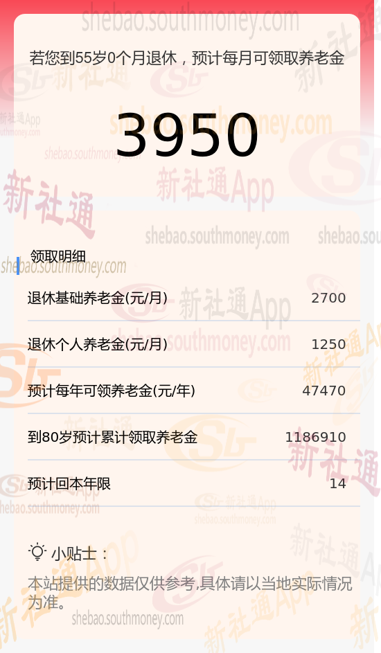 新社通app养老金计算器计算所得: