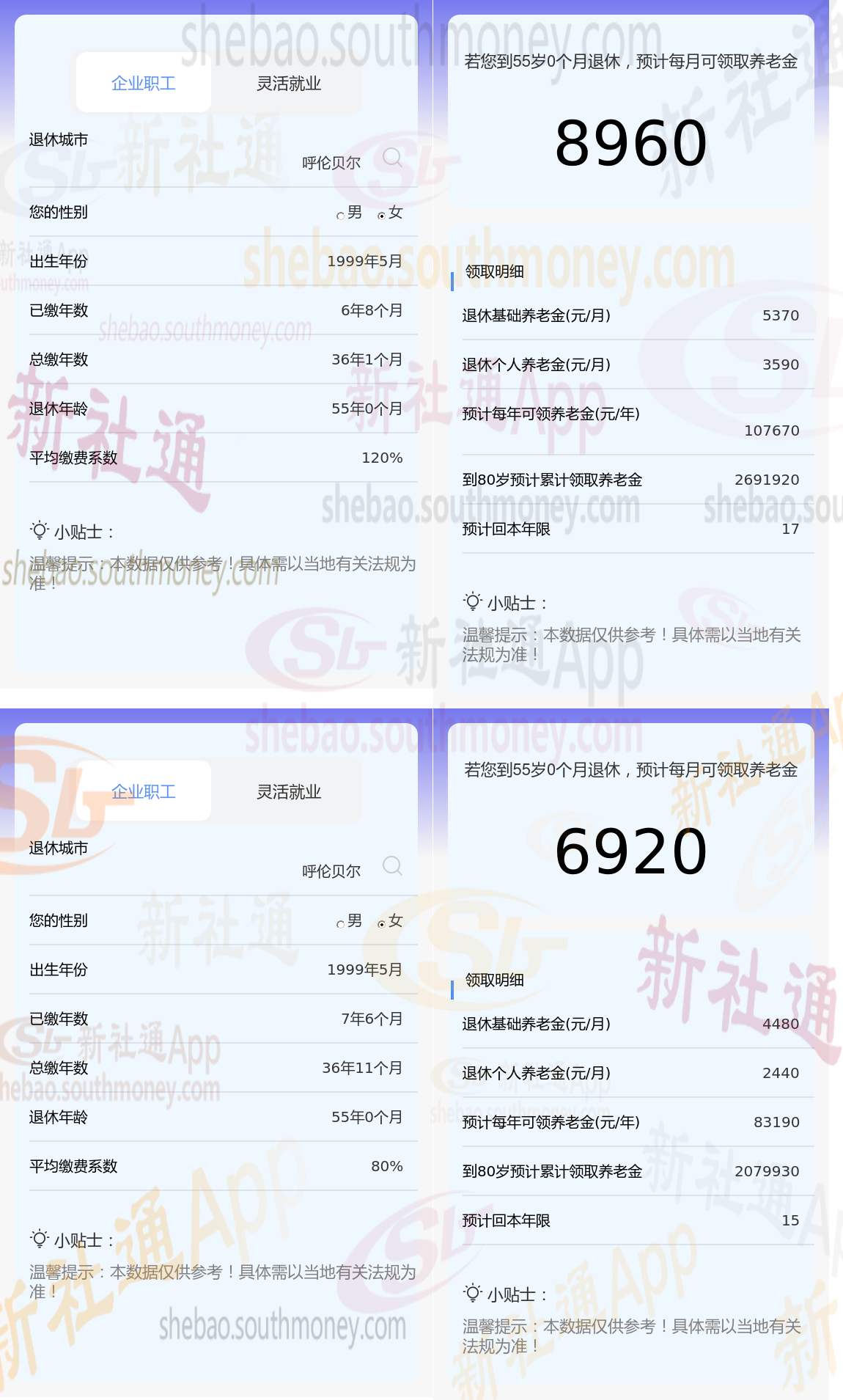 下面新社小编一起来看下,以呼伦贝尔为例(不考虑过渡养老金):
