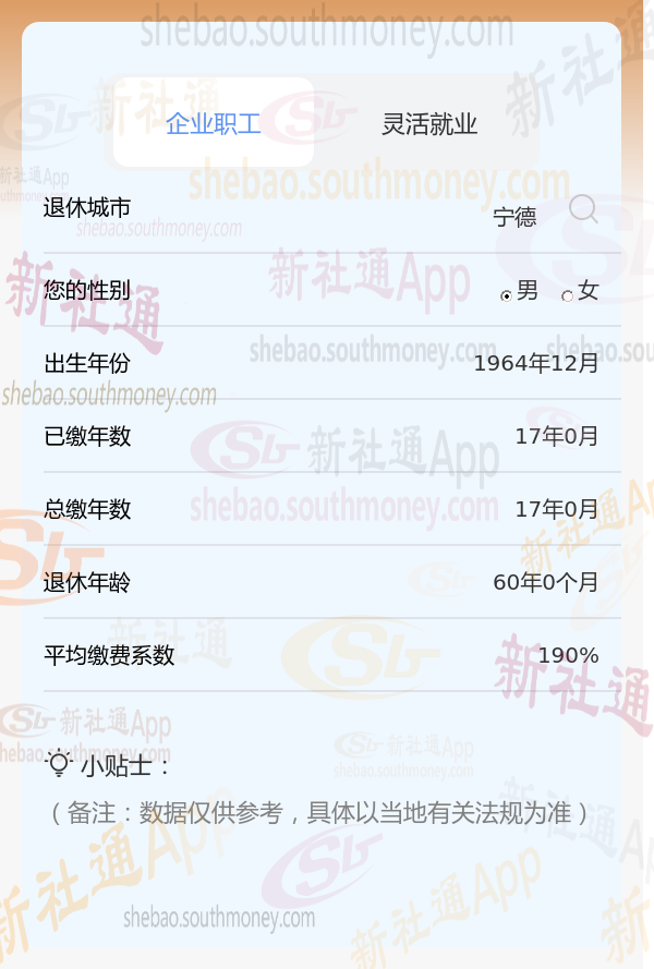 网友柯某,他对自己退休以后的养老金能领多少也特别关注,发来私信咨询,这位网友的参保地是宁德,工龄17年,按190%档位缴纳,请问养老金能领多少钱?知道了这些大概的数据后,我们就帮网友柯某估算一下社保退休工资能领多少?