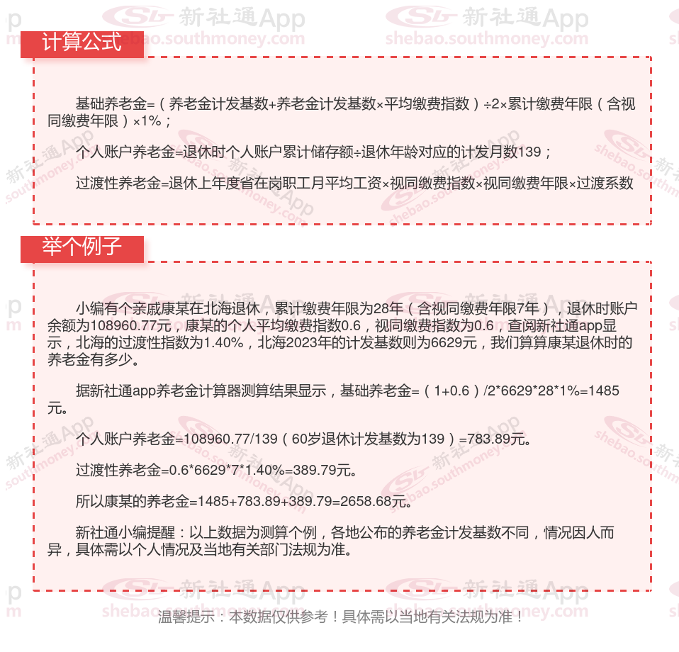 2006年6月30日之前的视同缴费年限过渡性养老金=视同缴费账户总额÷120;2006年之后的视同缴费年限过渡性养老金=视同缴费账户总额÷计发月数。