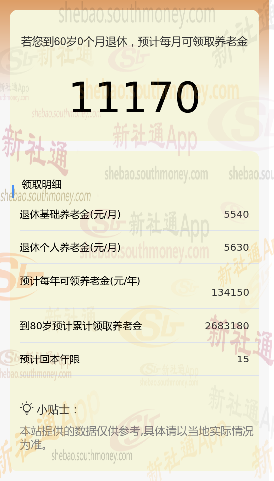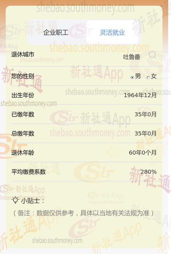 新社APP推出了一个,新社通app养老金计算器,今天分享给大家一个,缴满35年社保的测算案例。
