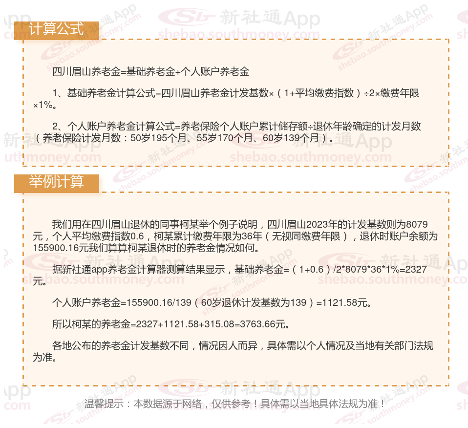 四川眉山退休工资养老金计算方法及公式2024年最新(举例说明)