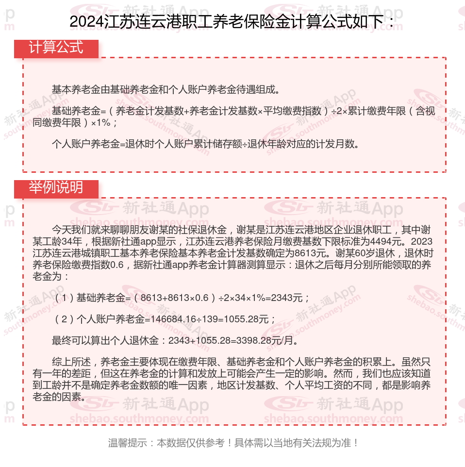江苏连云港退休工资养老金计算方法及公式2024年最新(举例说明)