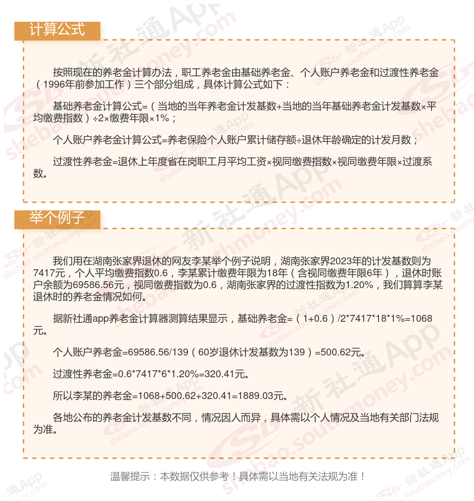 湖南张家界退休工资养老金计算方法及公式2024年最新(举例说明)
