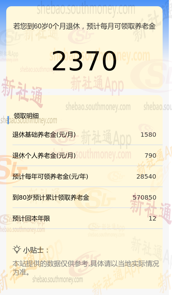 新社通app养老金计算器计算所得: