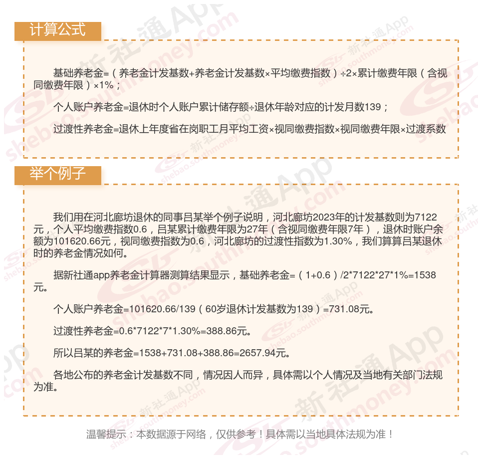 河北廊坊退休工资养老金计算方法及公式2024年最新(举例说明)