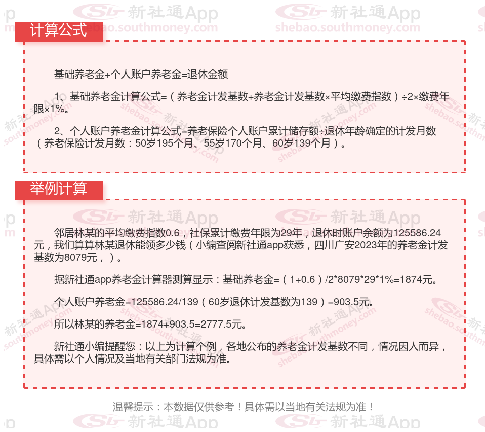 四川广安退休工资养老金计算方法及公式2024年最新(举例说明)