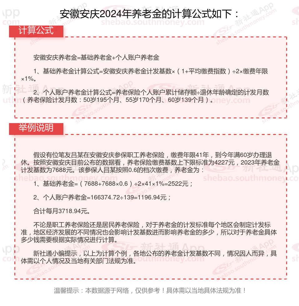 安徽安庆退休工资养老金计算方法及公式2024年最新(举例说明)