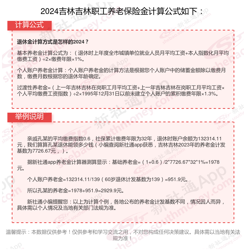 吉林吉林退休工资养老金计算方法及公式2024年最新(举例说明)