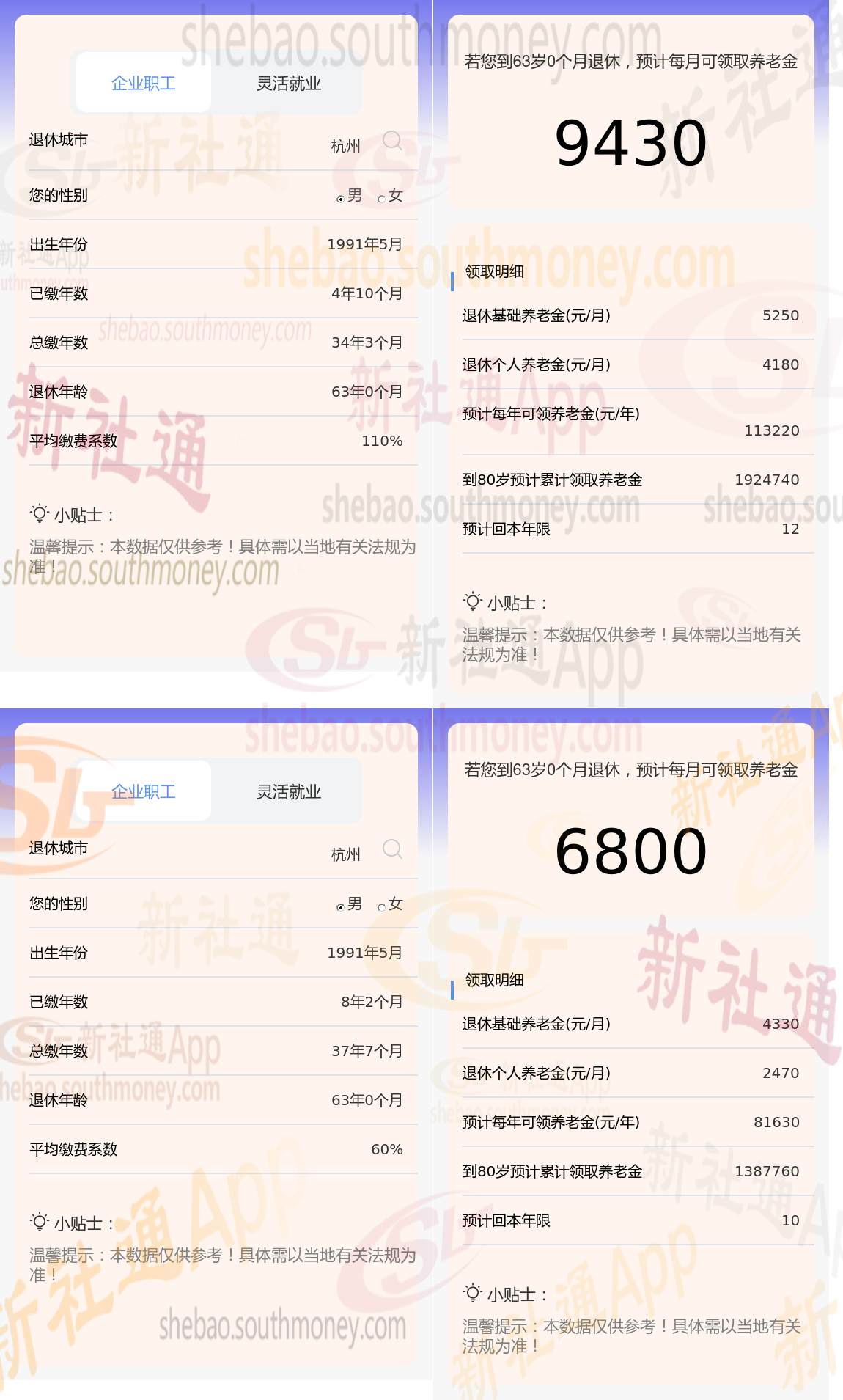 下面社保网app一起来看下,以杭州为例(不考虑过渡养老金):