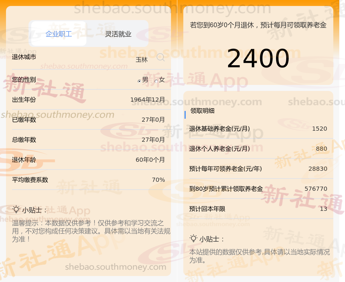 下面随着社保网-APP一起来看看,广西玉林交27年企业退休金多少?