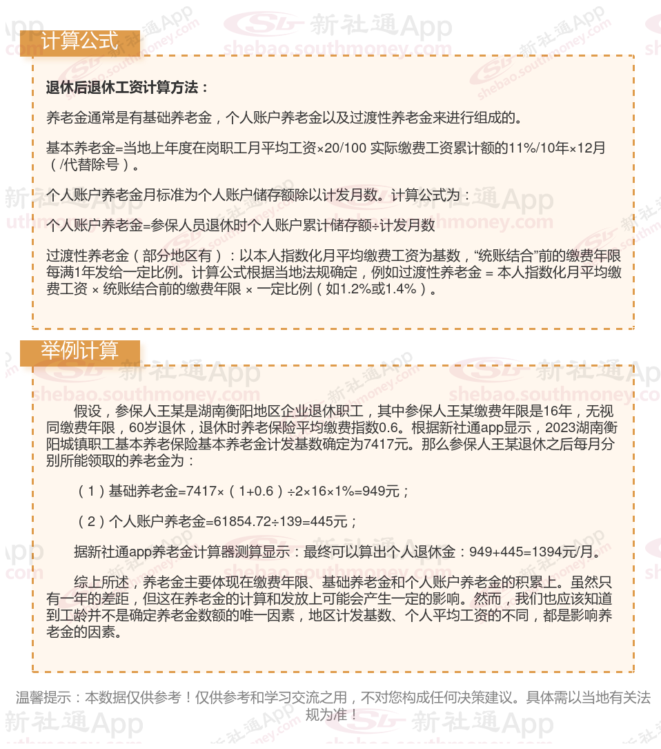 湖南衡阳退休工资养老金计算方法及公式2024年最新(举例说明)