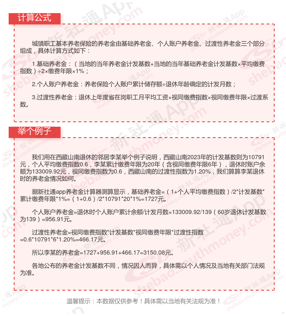 西藏山南退休工资养老金计算方法及公式2024年最新(举例说明)