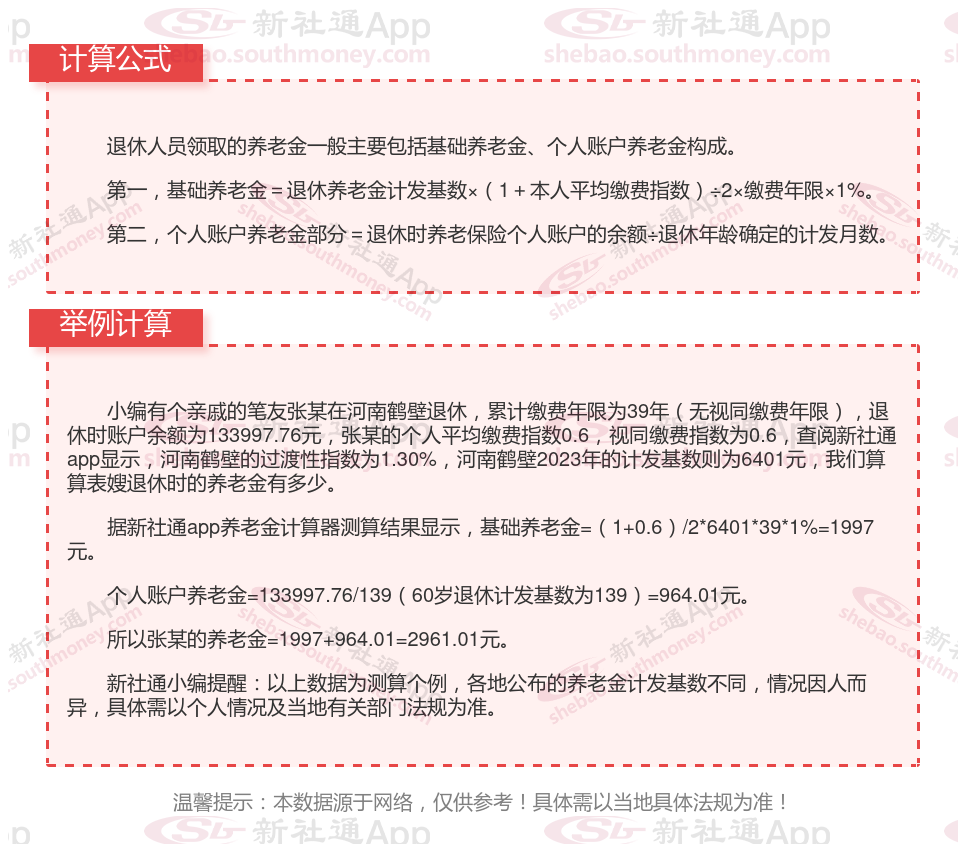 河南鹤壁退休工资养老金计算方法及公式2024年最新(举例说明)