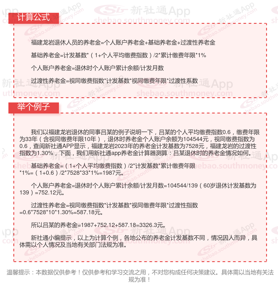 福建龙岩退休工资养老金计算方法及公式2024年最新(举例说明)