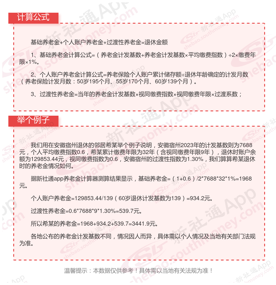 安徽宿州退休工资养老金计算方法及公式2024年最新(举例说明)