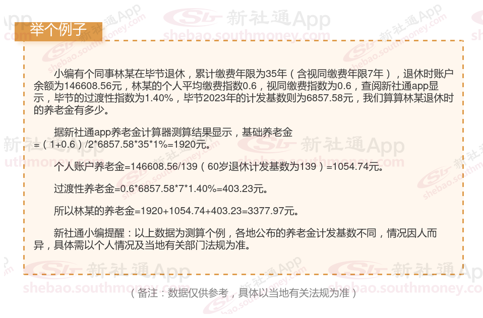 过渡性养老金月标准以本人指数化月平均缴费工资为基数,“统账结合”前的缴费年限每满1年发给1.2%。计算公式为: